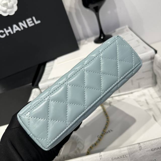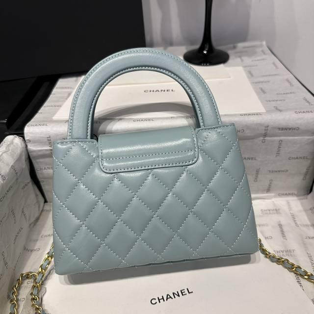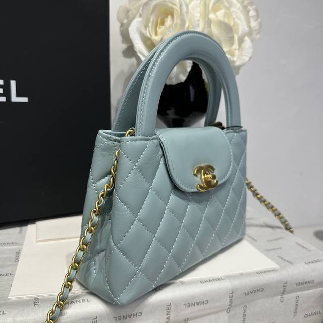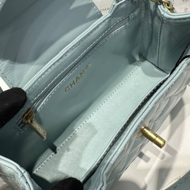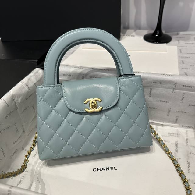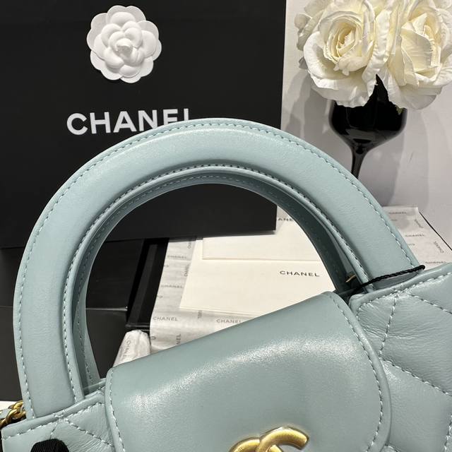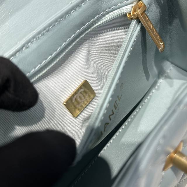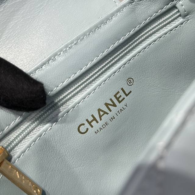香奈儿Chanel 1:1对标专柜顶级 意大利进口Onda Verde原厂油蜡小牛皮 Chane1 24A Kelly手柄包 浅蓝金 款号:As4416 尺寸: