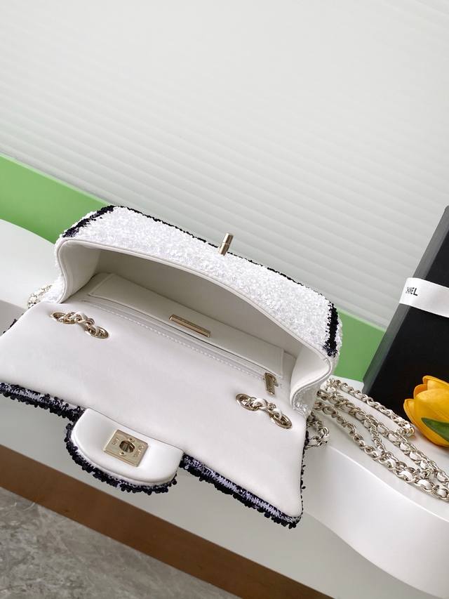 chanel 粗花呢雪花亮片盒子包 尺寸:22X10X9Cm