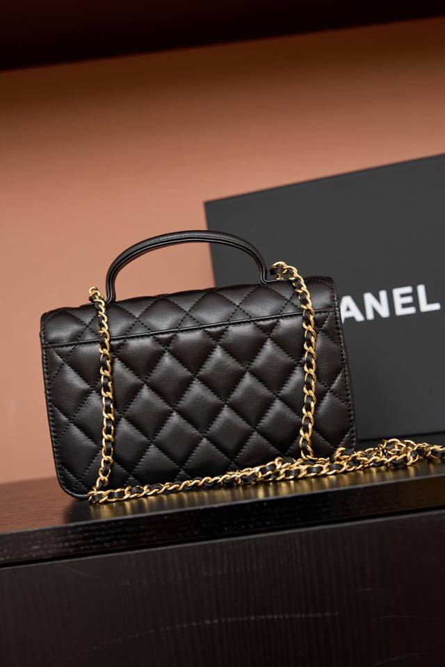 大号Chanel 25B 羊皮双C口袋手柄包 非常精致轻巧的包包 经典菱格纹搭配金属配件设计 很好看 尺寸:12.3X19X5Cm