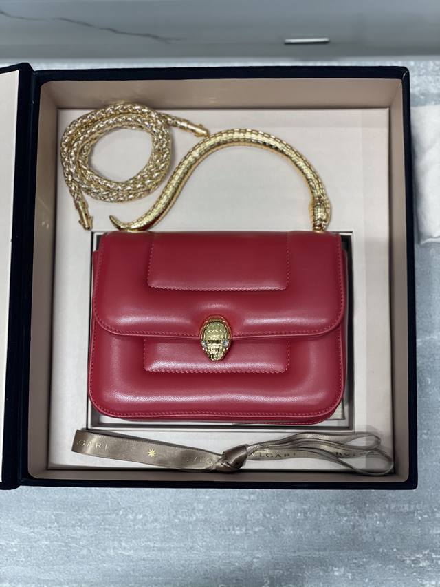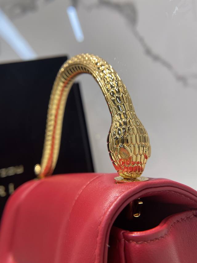 作为“设计师眼中的Serpenti”系列的全新篇章,Mary Katrantzou重新演绎经典的Serpenti图案,从灵蛇蜕变汲取灵感,推出全新的精美联名系列。此款手提包采用柔软白色小羊皮材质,搭配浅金镀金黄铜配饰。浅金镀金黄铜重释经典的Serpenti蛇首搭扣,搭配迷人的水晶双眸,尽显Bvlgari宝格丽古董腕表的设计元素