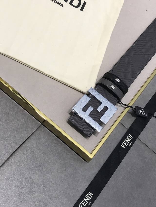 / Fendi 意大利进口头层荔枝纹牛皮配压花皮底,搭配真空电镀花纹纯铜扣,官网新款,专柜有售,市场顶级品质,支持验货 配送全套专柜包装,宽度 3.8Cm