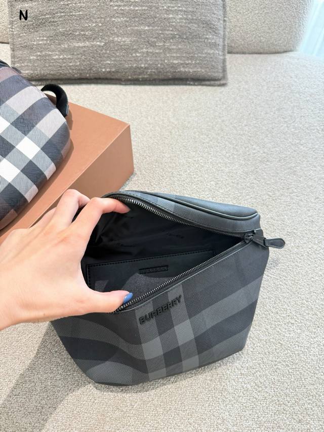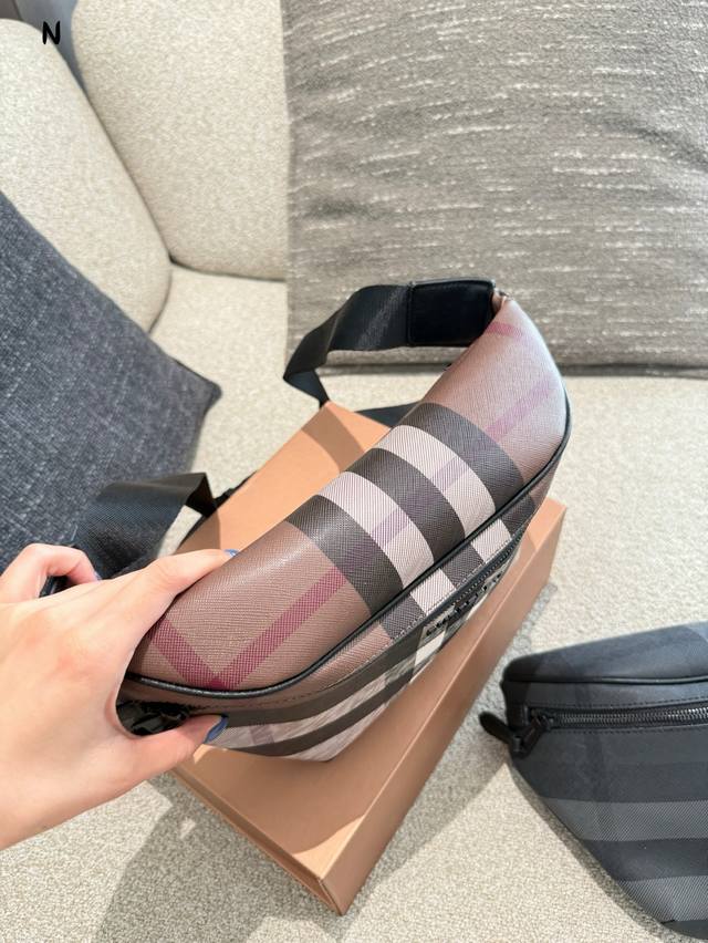 Burberry最新桦木棕格纹腰包,呈现标志性格纹设计,装饰皮革边饰及品牌徽标。可用背带斜挎或系于腰部。#包包合集 #男士斜挎包 #男包