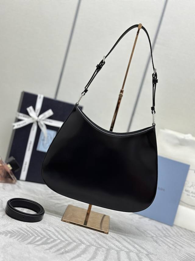 / 专柜最新款亮面腋下包大号1Bc156到货这款精致的Prada Cleo单肩包重新诠释品牌标志性的复古设计。可调式皮革提手+金属配件正面涂珐琅三角形金属徽标+磁扣