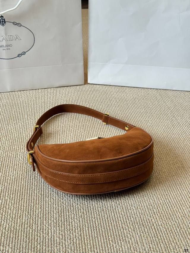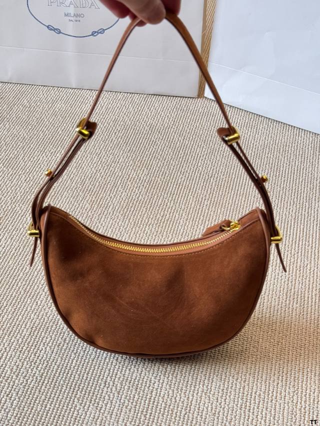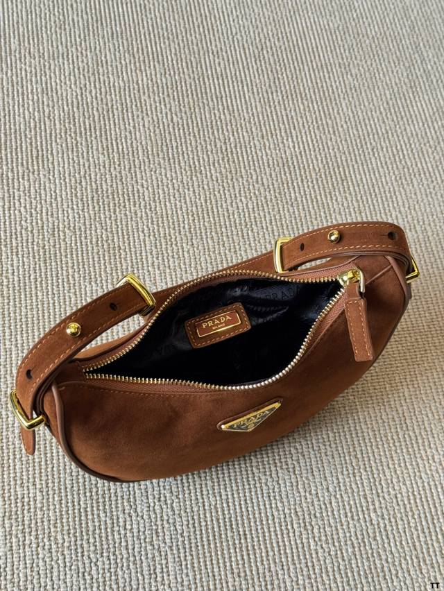 / 麂皮 Prada普拉达|Arque绒面皮革单肩包 24Fw秋冬Prada来啦满眼都是高级感 高级棕色调是不是温暖又质感十足 呀~简洁大方的设计既有现代感又不失经