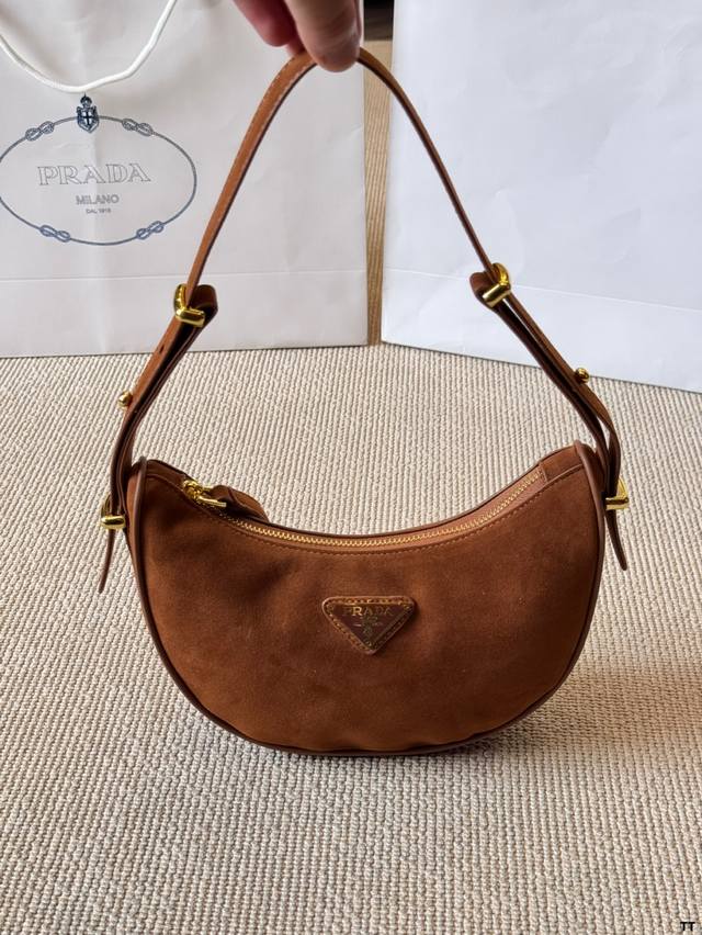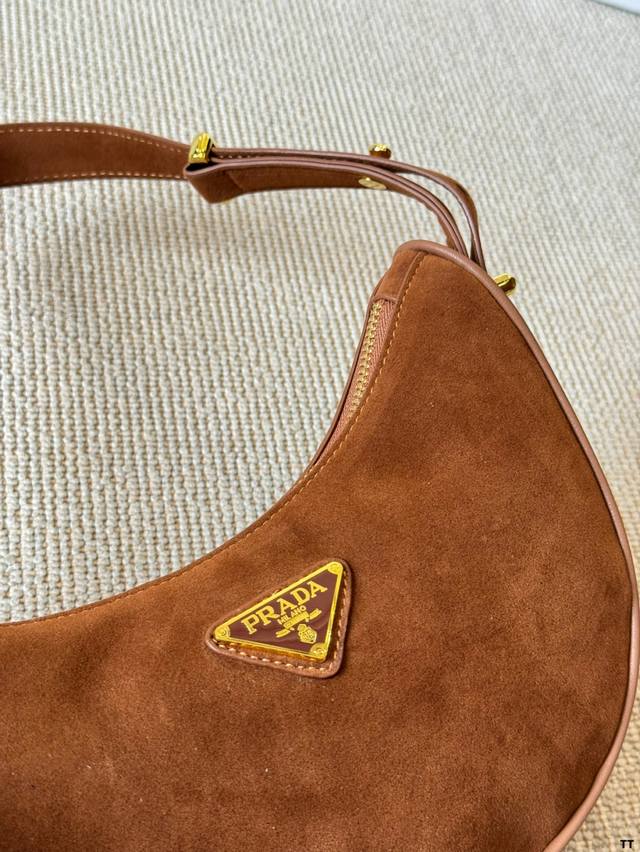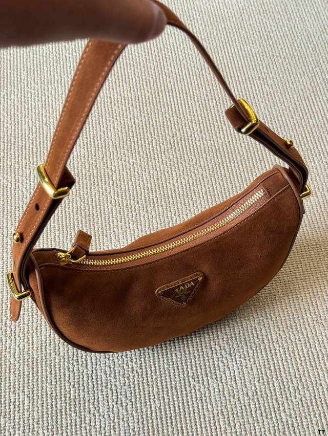麂皮 Prada普拉达|Arque绒面皮革单肩包 24Fw秋冬Prada来啦满眼都是高级感 高级棕色调是不是温暖又质感十足 呀~简洁大方的设计既有现代感又不失经