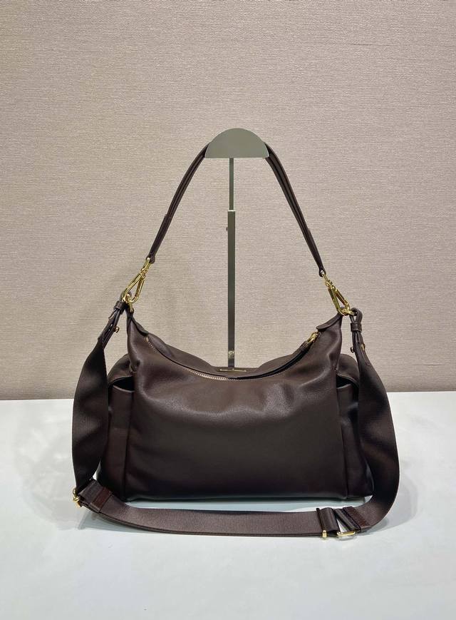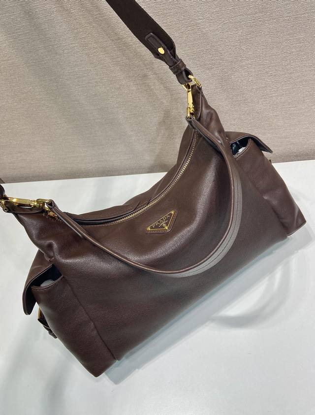新品羊皮1Bc264探索包 这款探索包采用进口植柔羊皮,具有柔软的轮廓和多个口袋。轻质实用的Re-Nylon强调了设计的多功能风格,而皮革细节和标志性点缀则反映了P家的手工传统,配有2条可拆卸、可调节的肩带。容量空间大,上身效果非常时尚。又是一款永久不过时爆款。值得拥有! 长32X高22X底11.5Cm