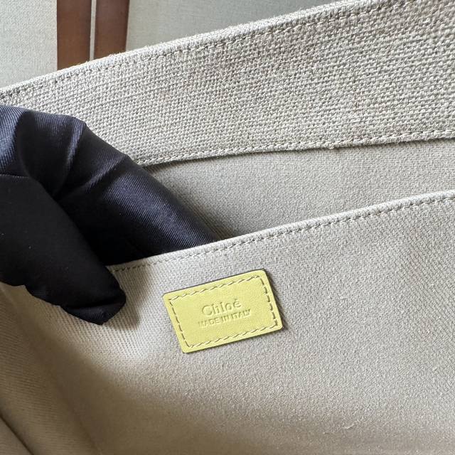 Schloe Woody爆全新升级版上市!!此次改革采用了以环保为主及定型性更加好的亚麻纯棉帆布与亮面小面皮制作而成。包身饰有Chloe丝印字体的白色缎带连贯起整个手袋、与米杏色缎带形成强烈对比的黑白 Chloe Logo背带,是整个包包的亮点。简约小清新的设计充满法式休闲的感觉,有五个尺寸!这款托特包-搭配原版专属礼品袋 蝴蝶结 款号 6063中号:37*26*12Cm