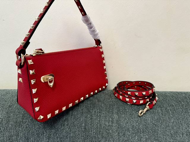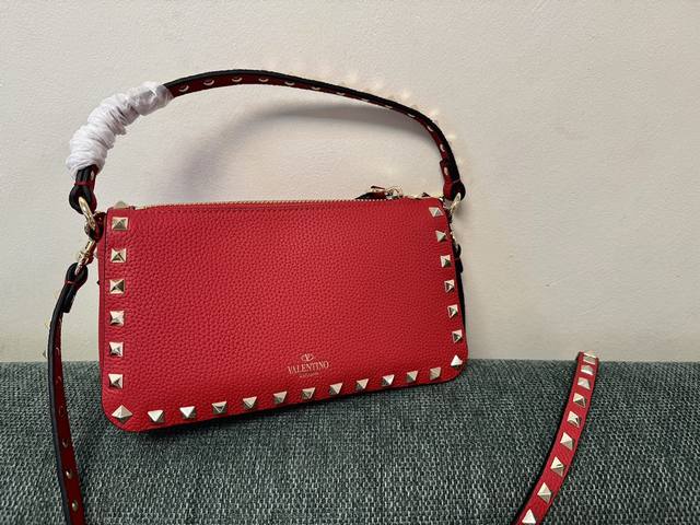 Vt新款小巧手挎包 型号:5500 尺寸:19X13X7Cm Valentino Garavani Rockstud 小号粒面小牛皮斜挎包,标志性的钩扣开合设计经重新诠释,止挡拉链拉头金属工艺效果处理铆钉和配件双重开合:拉链和钩扣可调式、可拆卸肩带