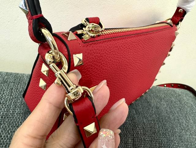 Vt新款小巧手挎包 型号:5500 尺寸:19X13X7Cm Valentino Garavani Rockstud 小号粒面小牛皮斜挎包,标志性的钩扣开合设计