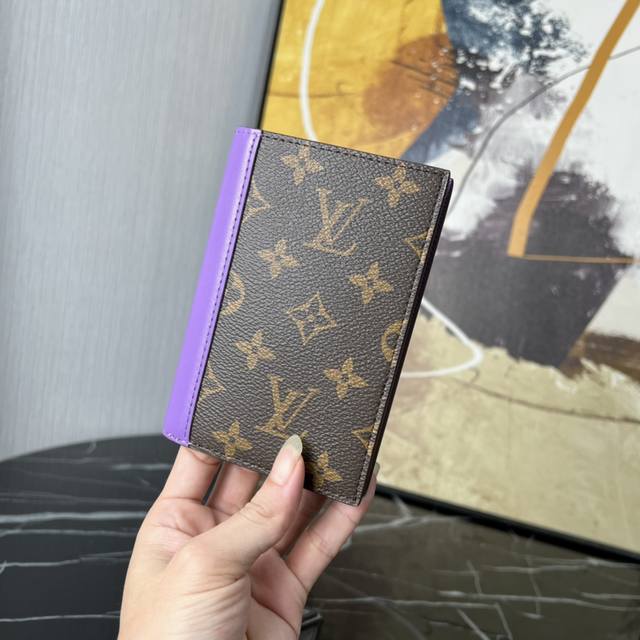 / 出厂价 顶级原单 M82867 紫色 护照套、本款护照套为 Monogram Macassar 帆布勾勒明亮皮革饰边,织物内衬延续相同色调。实用设计配有贴袋和多
