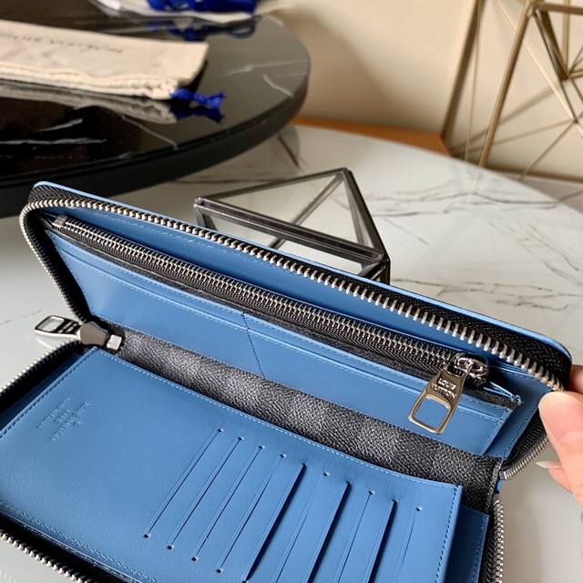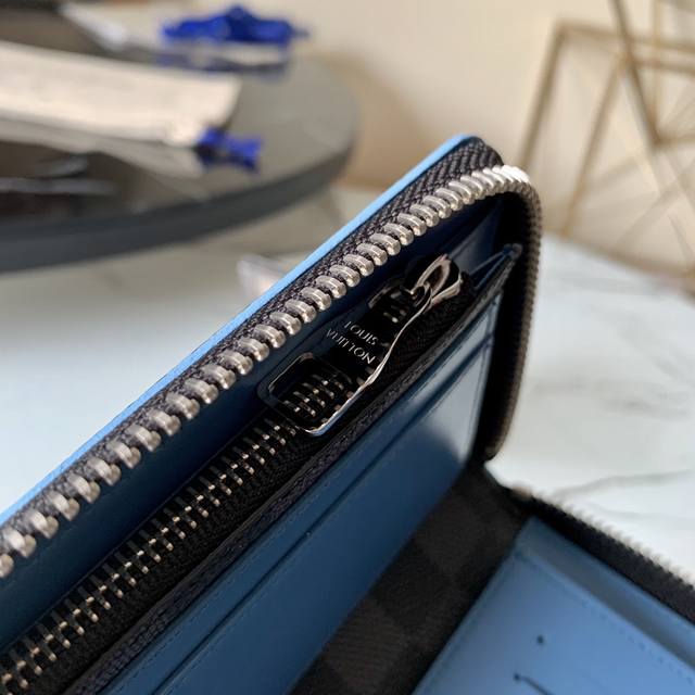 出厂价 N64436 蓝色 Damier Graphite帆布与霓虹蓝皮革内衬之间产生奇妙的搭配效果,为此款钱夹增添细腻成熟的风韵。此款zippy竖款钱夹是低调优雅的化身。丰富而排布有致的口袋和隔层设计可轻松容纳现金、信用卡和零钱。