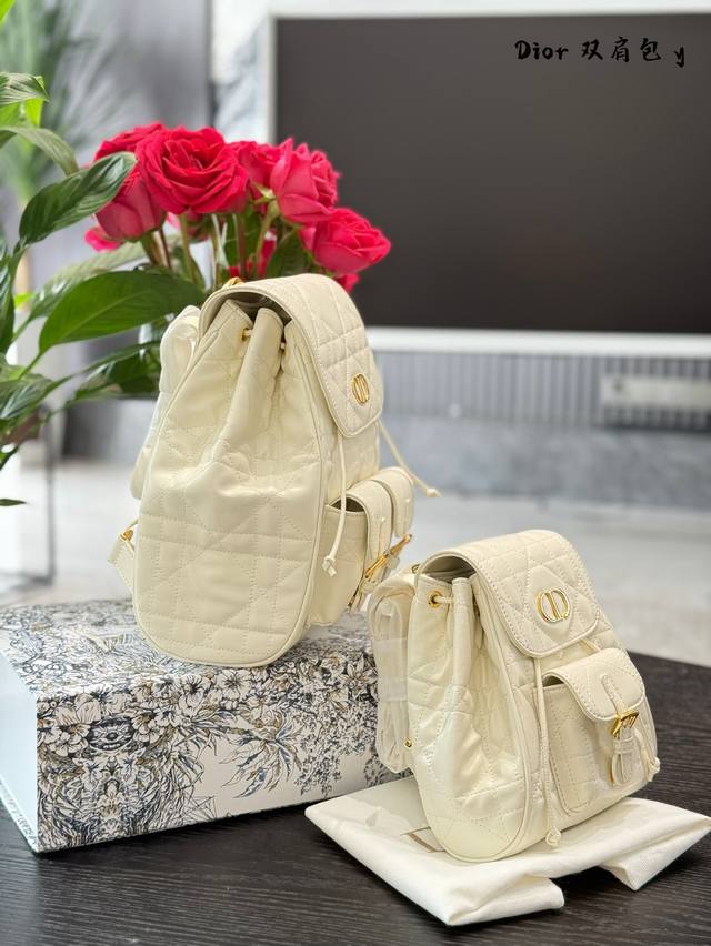品牌大使刘雨昕、周也上身Dior新款Caro小号双肩背包,小巧包型搭配本季主推的超大藤格纹,挺好看的