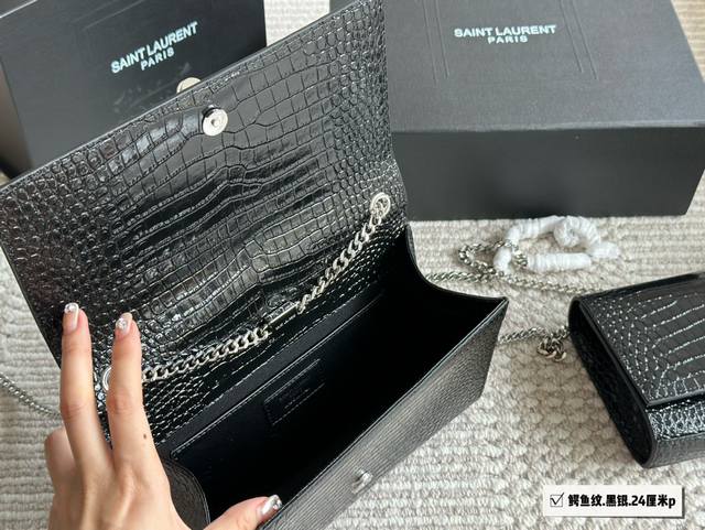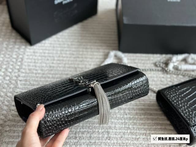 配盒 Size:20*12Cm 小 24*15Cm 大 Ysl Woc信封包 鳄鱼纹牛皮看起来质感特别好!耐磨耐用! 斜挎腋下