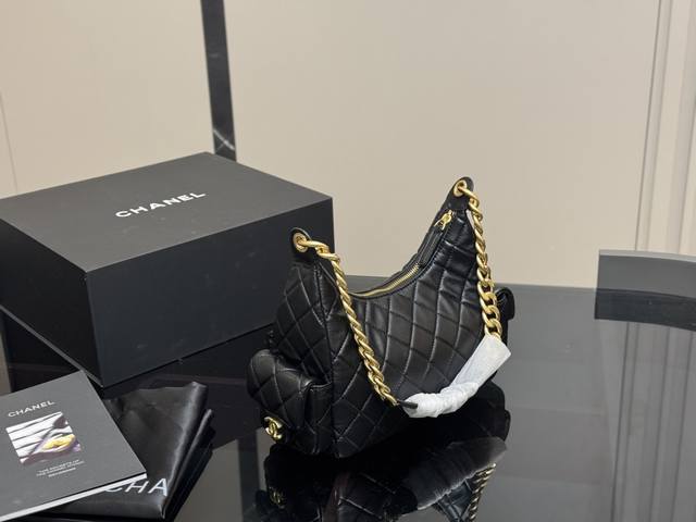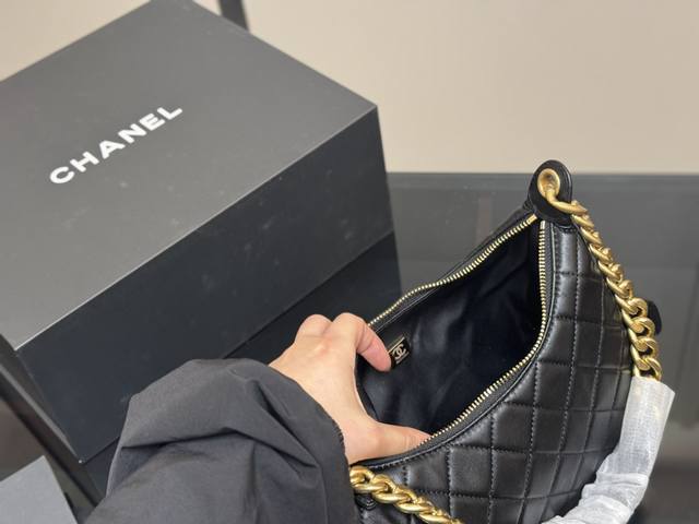 折叠礼盒 Chanel 香奈儿 24 新品 Hobo 腋下包 谁能拒绝一个能装又好看的hobo啊! 还是羊皮黑金hobo 而且链条也很特别...