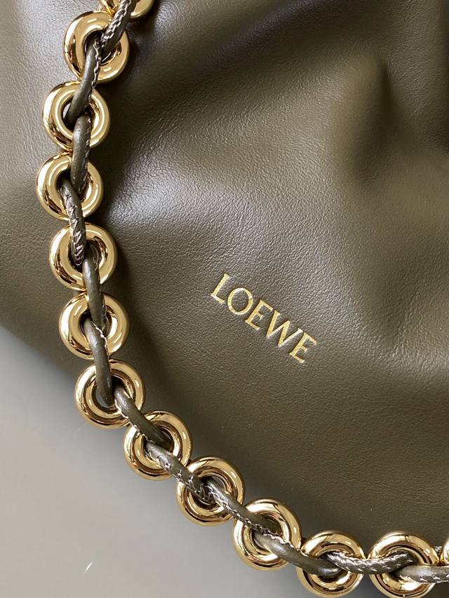 明星同款 柔软纳帕羊皮革 Flamenco Purse 新款手拿包flamenco Purse 手袋采用褶皱设计侧面搭配标志性绳结等关键细节。款式时尚百搭可作为手拿包携带亦可搭配甜甜圈链条肩背或搭配皮革肩带斜挎。此版本采用柔软纳帕羊皮革制成。*可肩背、斜挎或手提*可拆卸可调节皮革肩带*可拆卸甜甜圈链条饰有 Anagram 镌刻卵石纹*低调的磁扣开合*绒面革衬里* Loewe 烫金或烫银
