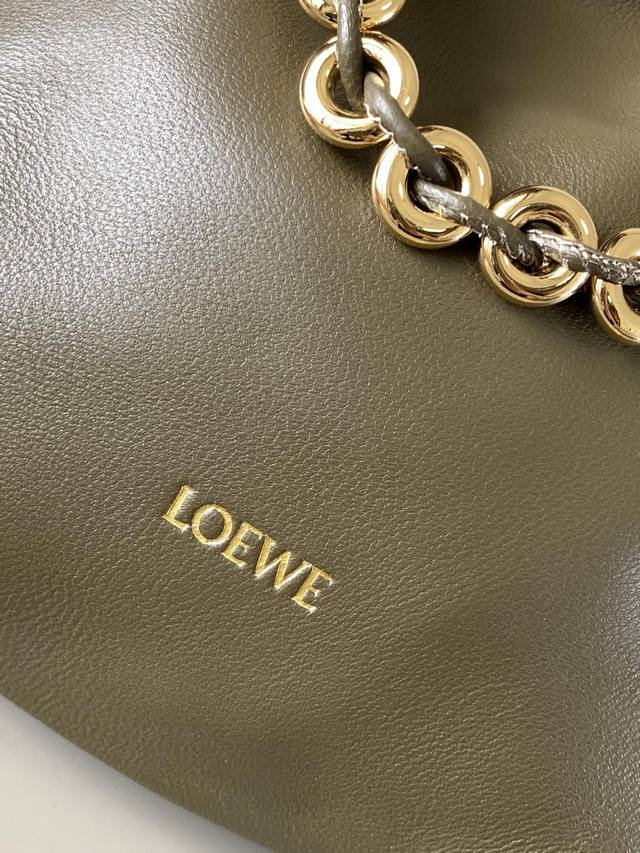 明星同款 迷你纳帕羊皮革 Flamenco Purse 新款手拿包flamenco Purse 手袋采用褶皱设计侧面搭配标志性绳结等关键细节。款式时尚百搭可作为手拿包携带,亦可搭配甜甜圈链条肩背或搭配皮革肩带斜挎。此版本采用柔软纳帕羊皮革制成。*可肩背、斜挎或手提*可拆卸可调节皮革肩带*可拆卸甜甜圈链条饰有 Anagram 镌刻卵石纹*低调的磁扣开合*绒面革衬里* Loewe 烫金或烫银