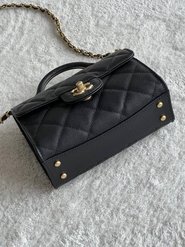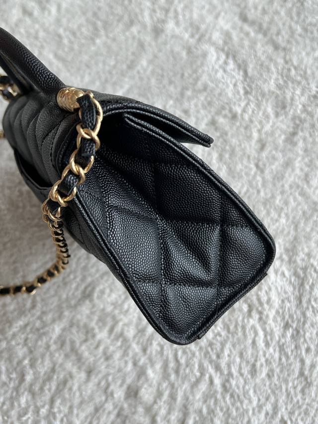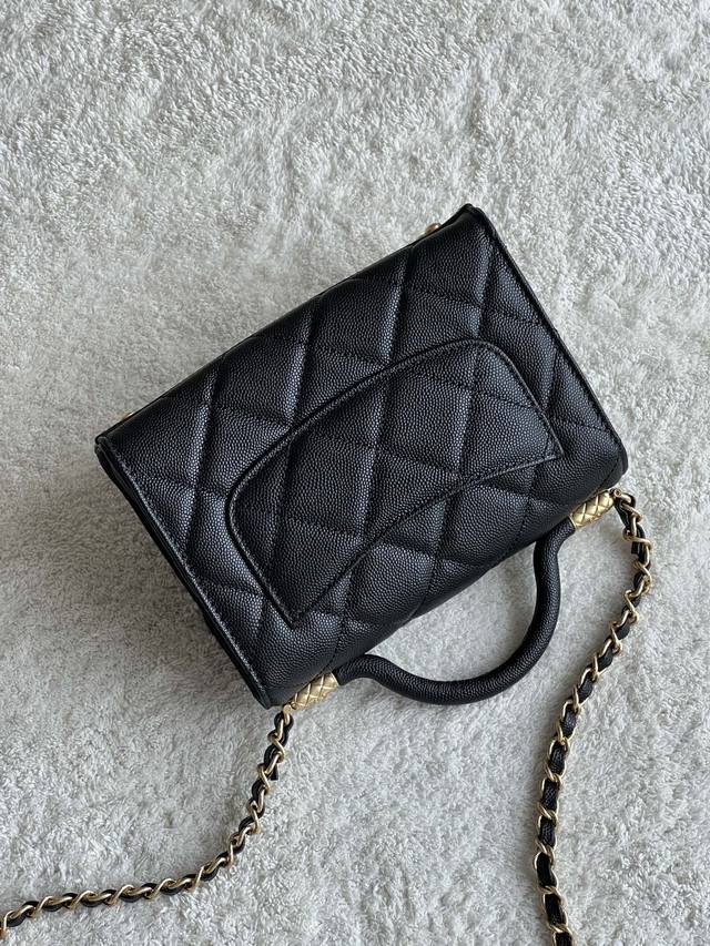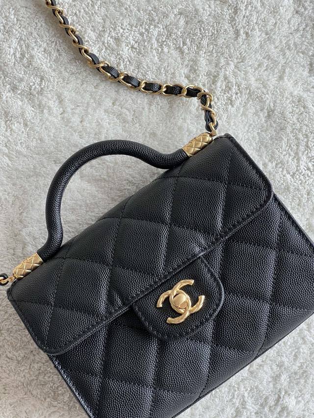 黑金手柄斜挎包来了!采用黑色荔枝纹牛皮 金色磨砂金 亮点是可以斜挎和手提 迷你的包身 非常轻盈可巧 容量虽小 但是还是非常适合这个夏天!