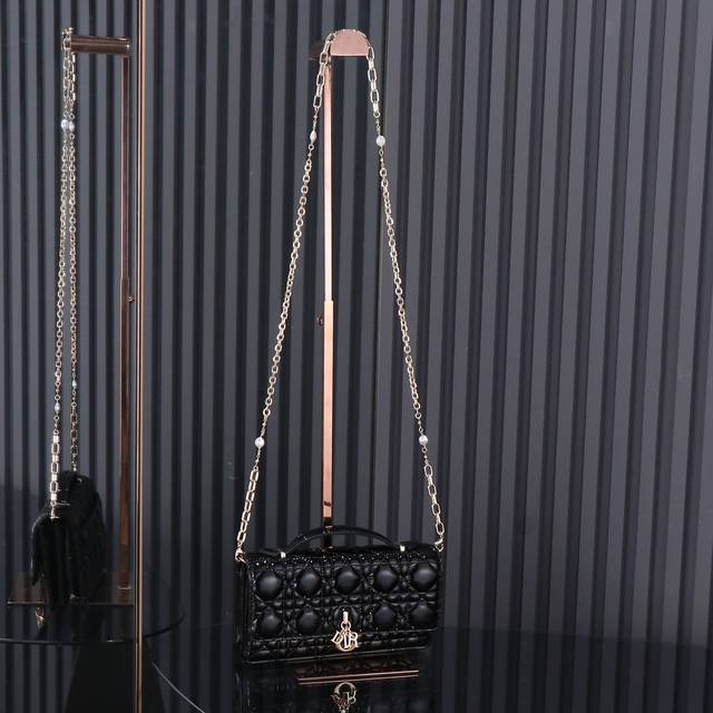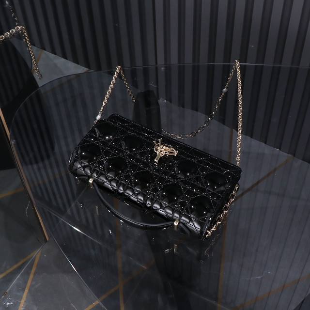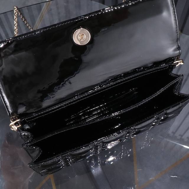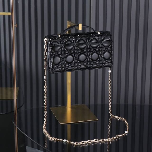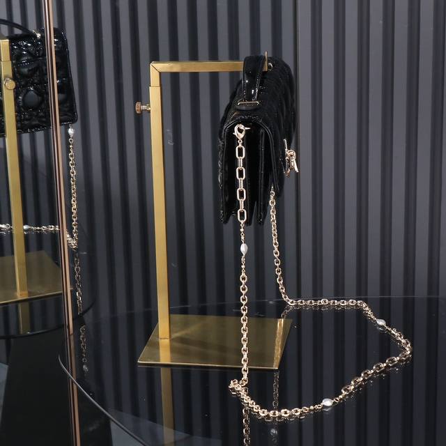 / 原厂级 黑色漆皮 砖柜最新珍珠链条手拿包标志性的藤纹格,经典的字母吊饰