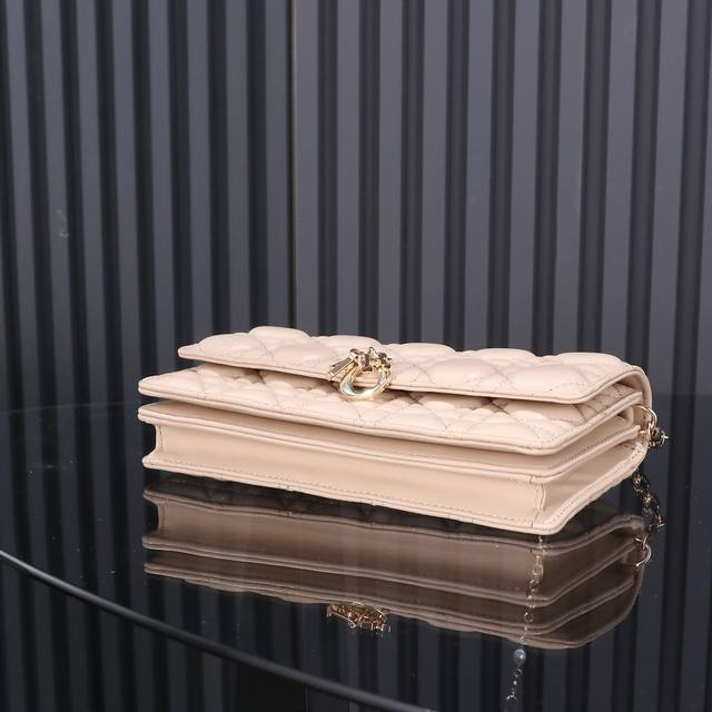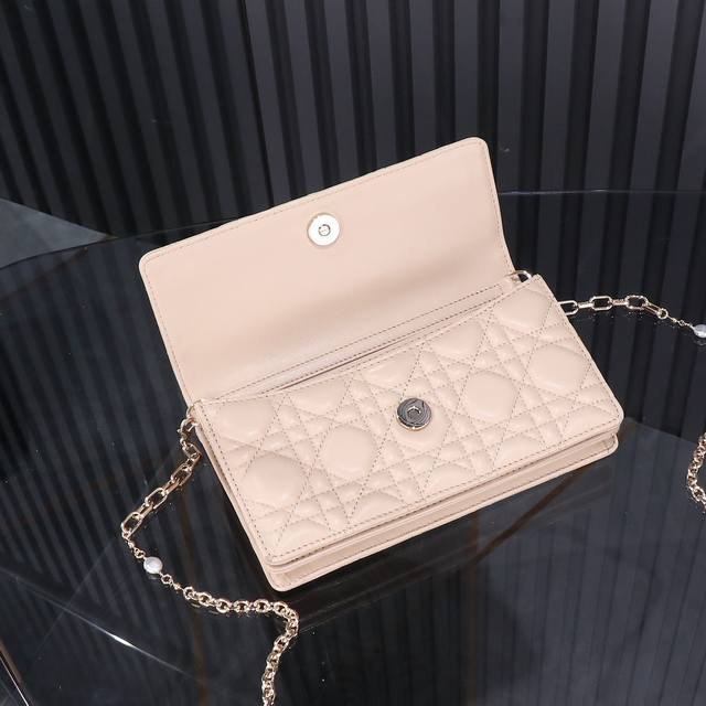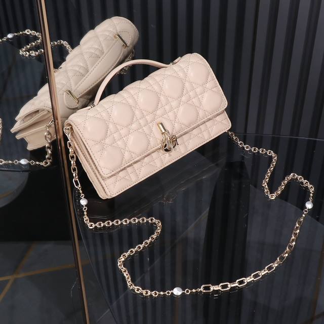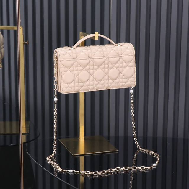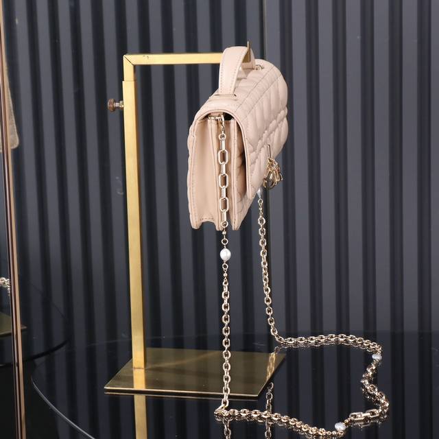 / 原厂级 杏色 砖柜最新珍珠链条手拿包标志性的藤纹格,经典的字母吊饰
