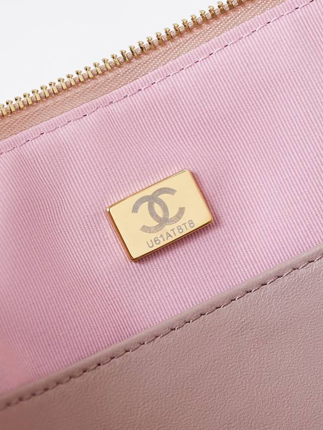 小香进口意大利小羊皮 货号:A1059 尺寸:W20×H12.5×D1Cm 颜色:粉色小羊皮金色钢唛