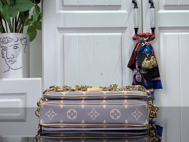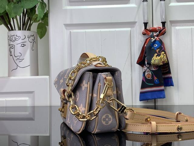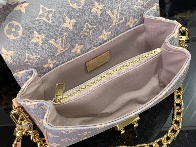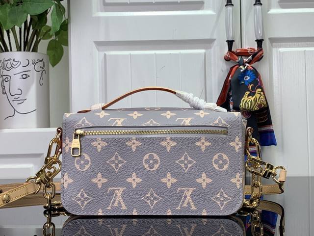 本款 Pochette Métis East West 手袋汲取品牌传统硬箱的色彩灵感,为标志性 Monogram 涂层帆布渲染优雅法式色调,搭配光滑牛皮革饰边和 S-Lock 锁扣,与 2024 秋冬成衣系列搭配相宜。