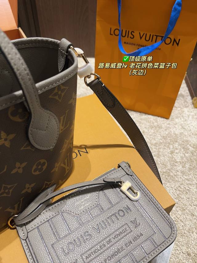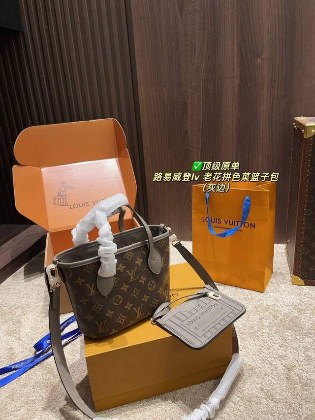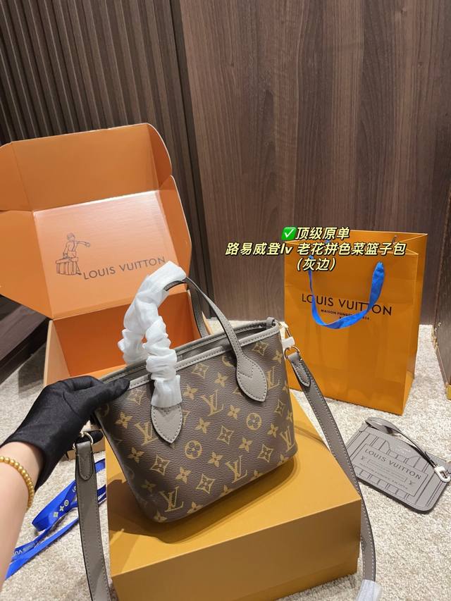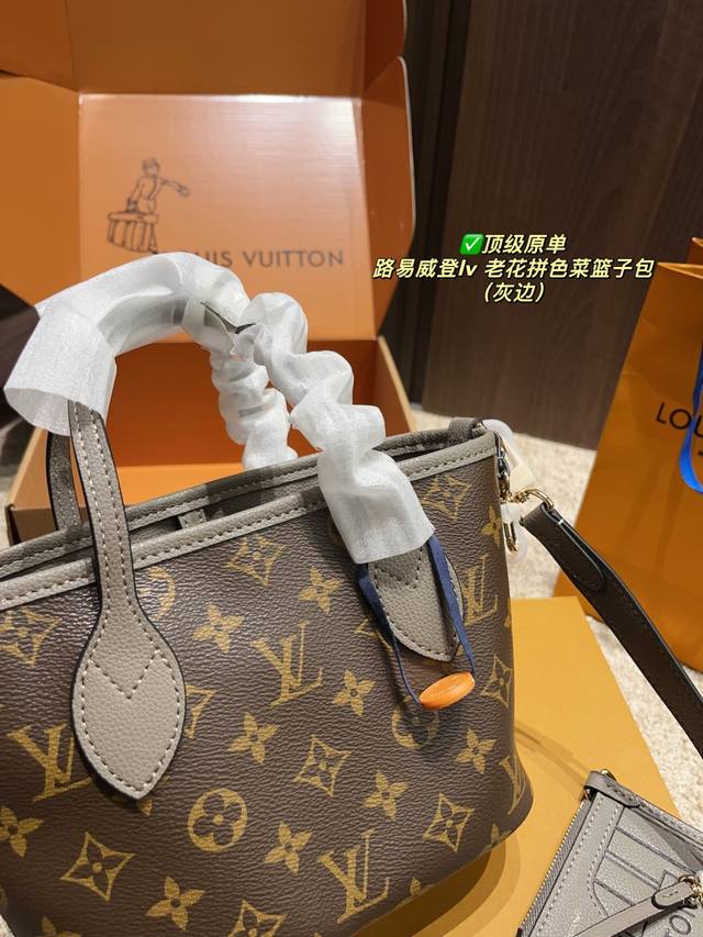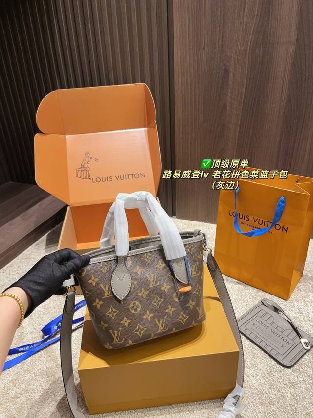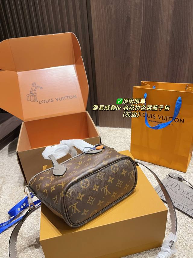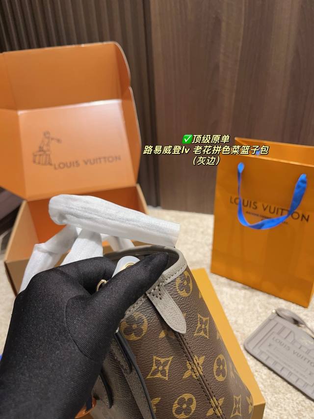 顶级原单 配折叠盒尺寸20.15 路易威登Lv 老花拼色菜篮子包 是一只好看的亮眼托特包 我害怕Hold不住它 但是又喜欢 还不错 可以两面切换着背 内里容量也