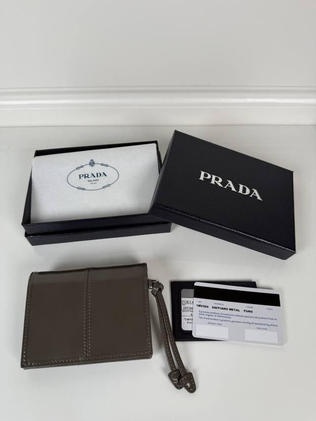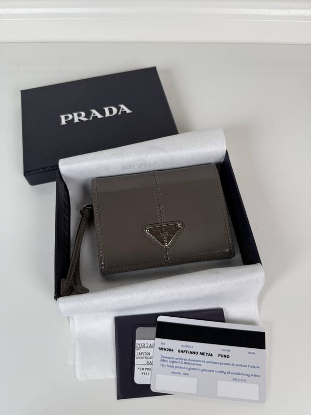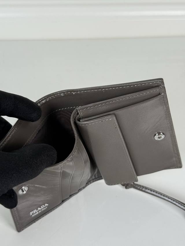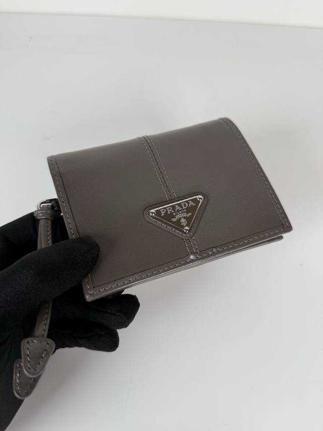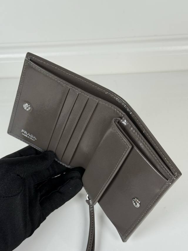/ P家女士两折短夹,型号1M0204,灰色油腊牛皮,长度11.2高度9.5Cm,简单实用提升个人品味的一款,175钢印