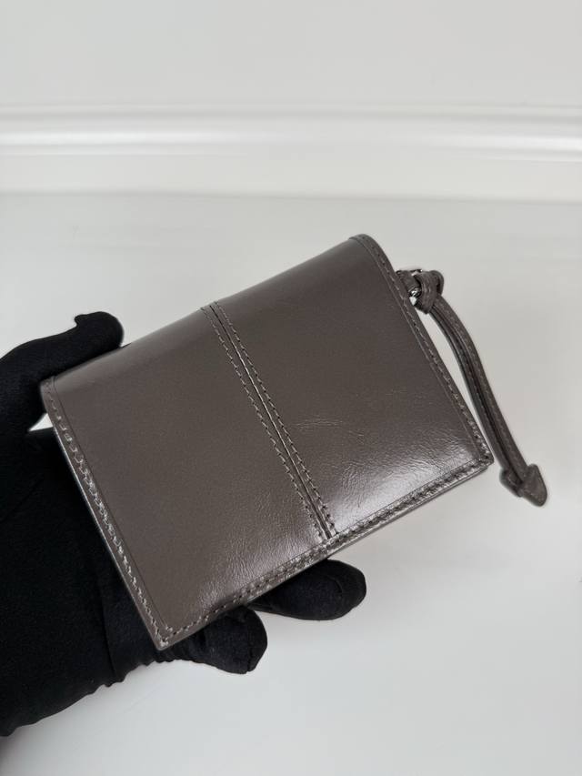 P家女士两折短夹,型号1M0204,灰色油腊牛皮,长度11.2高度9.5Cm,简单实用提升个人品味的一款,175钢印