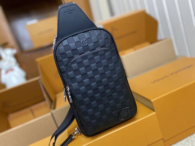/ 顶级原单 N45303压格支持Nxp芯片感应 动态芯片本款 Avenue 单肩包于 Damier Infini 皮革表面压印经典棋盘格纹,可在不影响柔软质感的同