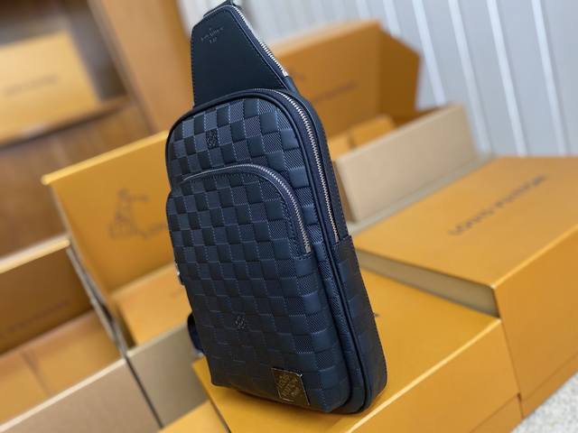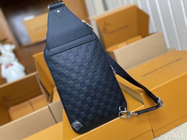 顶级原单 N45303压格支持Nxp芯片感应 动态芯片本款 Avenue 单肩包于 Damier Infini 皮革表面压印经典棋盘格纹,可在不影响柔软质感的同时保持图案清晰度。可调节肩带可通过 D 形环固定于左右两侧。