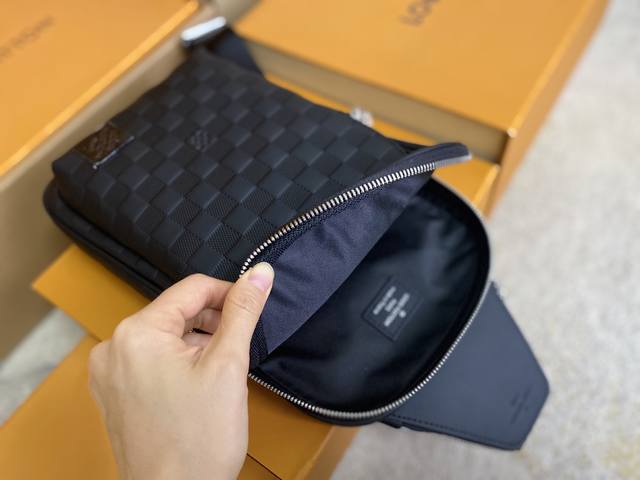 顶级原单 N45303压格支持Nxp芯片感应 动态芯片本款 Avenue 单肩包于 Damier Infini 皮革表面压印经典棋盘格纹,可在不影响柔软质感的同