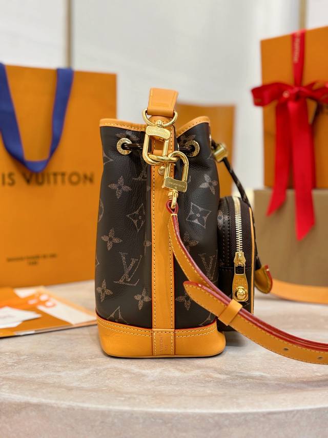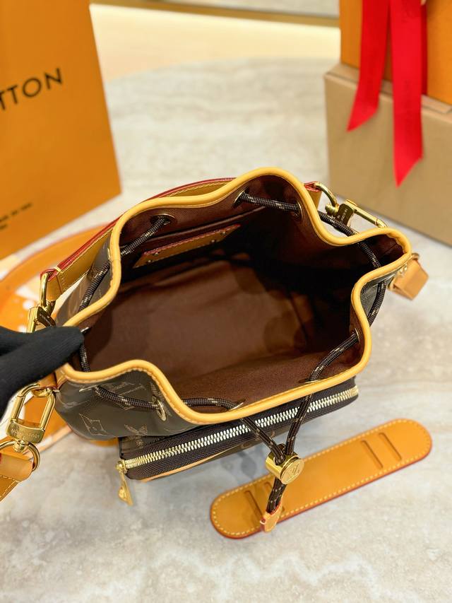 Noé Cargo 是一款小巧的水桶包 由亮面牛皮革构型 呈现尼龙般的科技感光泽 内衬采用深沉色调织物 金属件 包括连接在球形链条上的 L*字母在内 成为这款单色手袋上的唯一色彩调和元素 内设宽敞前袋 Size:24X22X16Cm