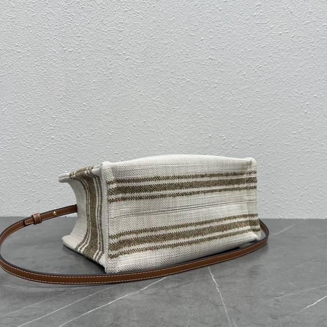 Cabas Thais 小号Celine 条纹织布 手拎包 肩背包 斜挎包! 这款包是季节限定最新推出的托特. 采用织物面料 相对于皮革跟草编 织物更加耐用 舒适,包袋配有棕色可调节牛皮革肩带 ,日常出勤 上班都非常实用 容量感人.