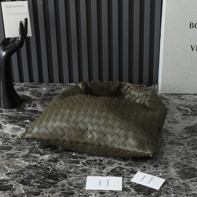 葆蝶家经典皮革编织工艺全手工打造,包身整体无缝合线,叠塔吸扣设计拿取方便