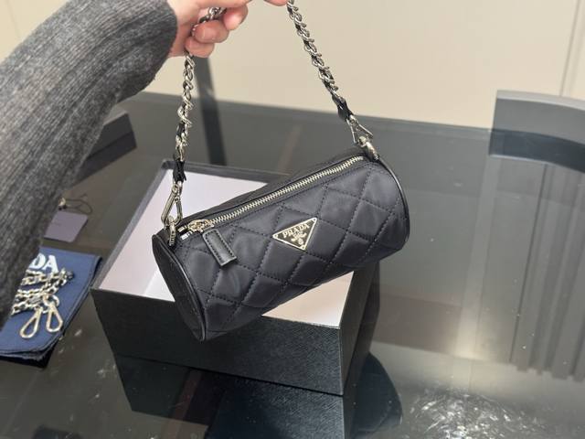 配盒 Size:21.10Cm 普拉达25Ss 新款圆桶包 圆圆小可爱,配长肩带! 非常小巧时 实用又好看!!!