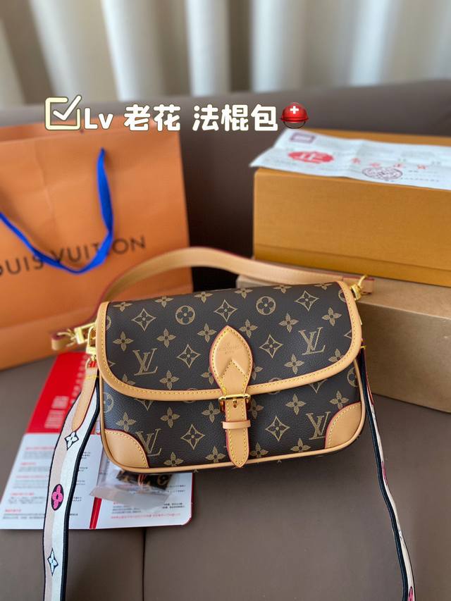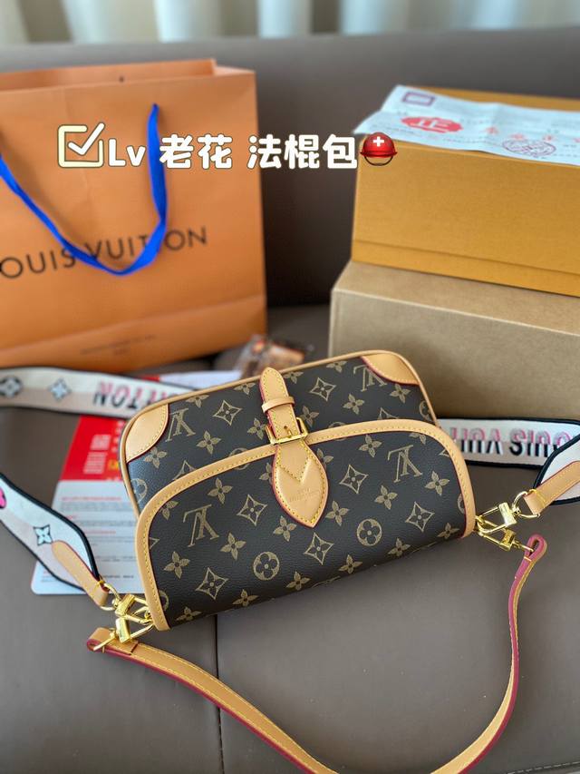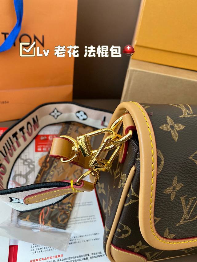 / Lv 法棍包 它是有两条肩带组成的,一条是牛皮的肩带,另一个呢是跟Speedy20一样的刺绣宽肩带 真的是复古又时尚 尺寸24.17