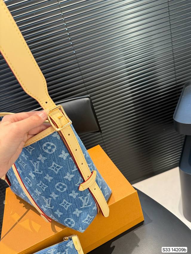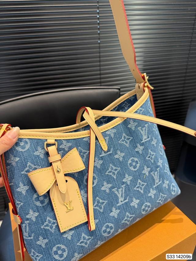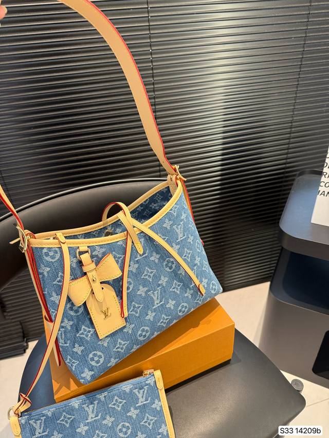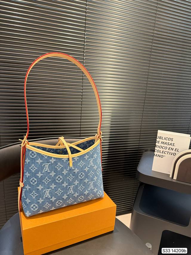 配盒子 Carryall V牛仔新款,可斜挎、单肩。容量保证,敞口磁铁吸内扣取放平板小电脑非常方便,设计比Neverfull小巧、肩带够宽不那么勒;比Graceful俏皮,上身完全;是驴家通勤包款颜值担当 尺寸26 21 货号14209