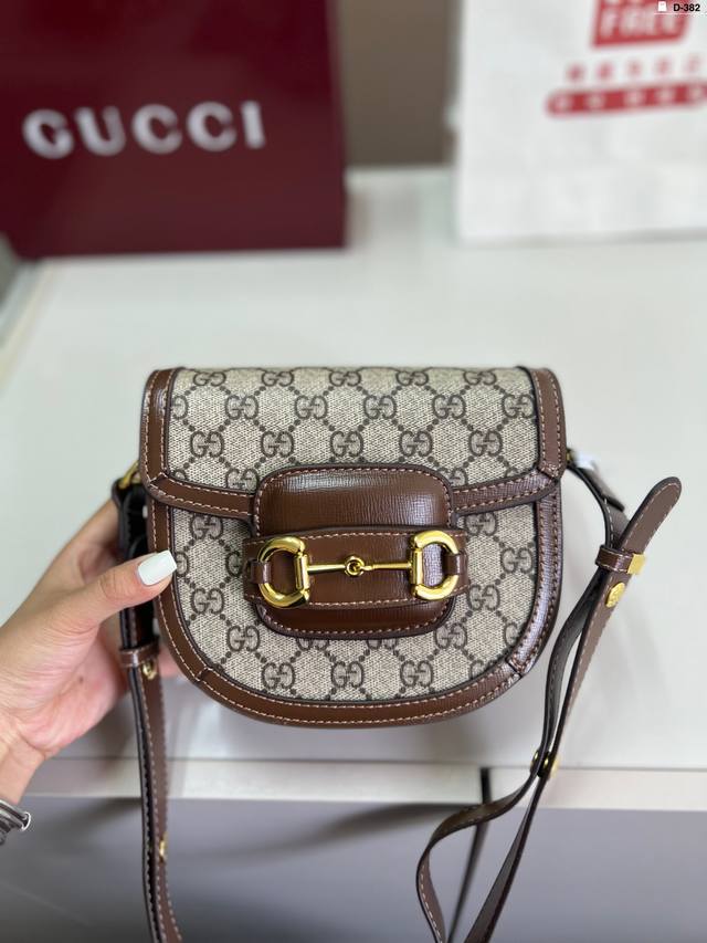 / 貌美如花的1955 酷奇Gucci复古马鞍包 经典的马衔扣+Monogram+勾边设计 D-382尺寸18×15折叠盒