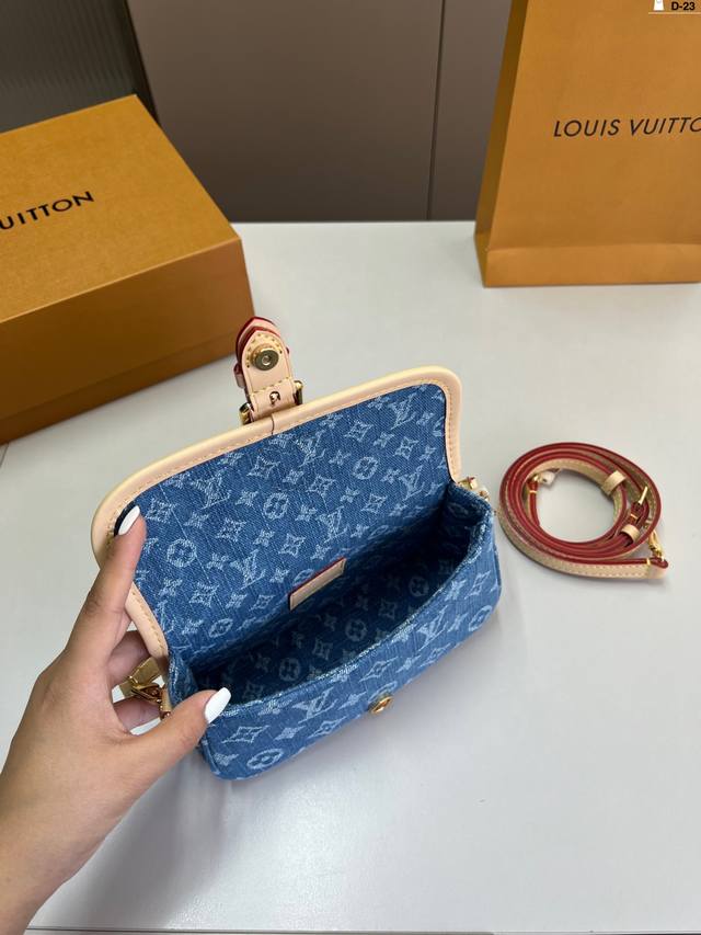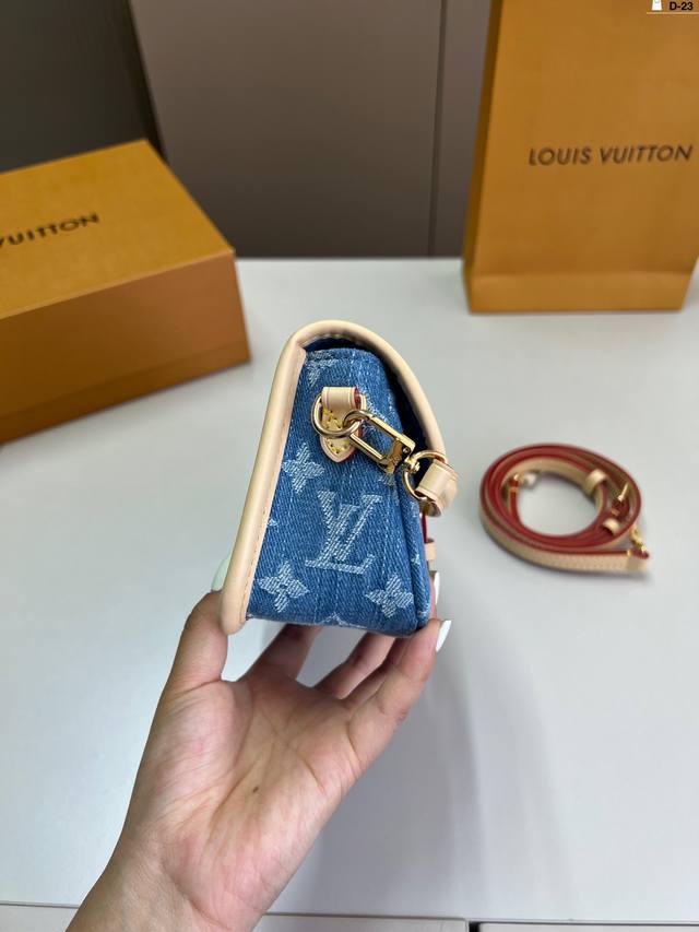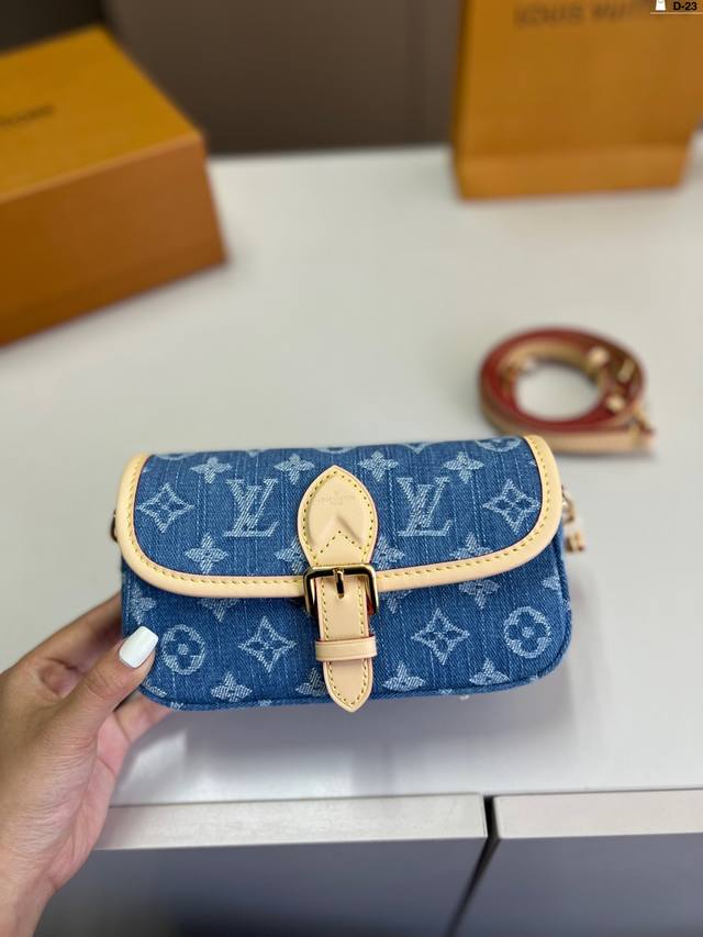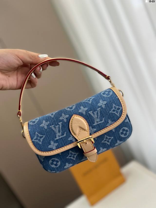 / Lvdiane丹宁牛仔系列法棍包 单肩斜挎腋下包搭配刺绣肩带 配2个肩带 都可以拆卸 D-23尺寸19×9折叠盒飞机盒
