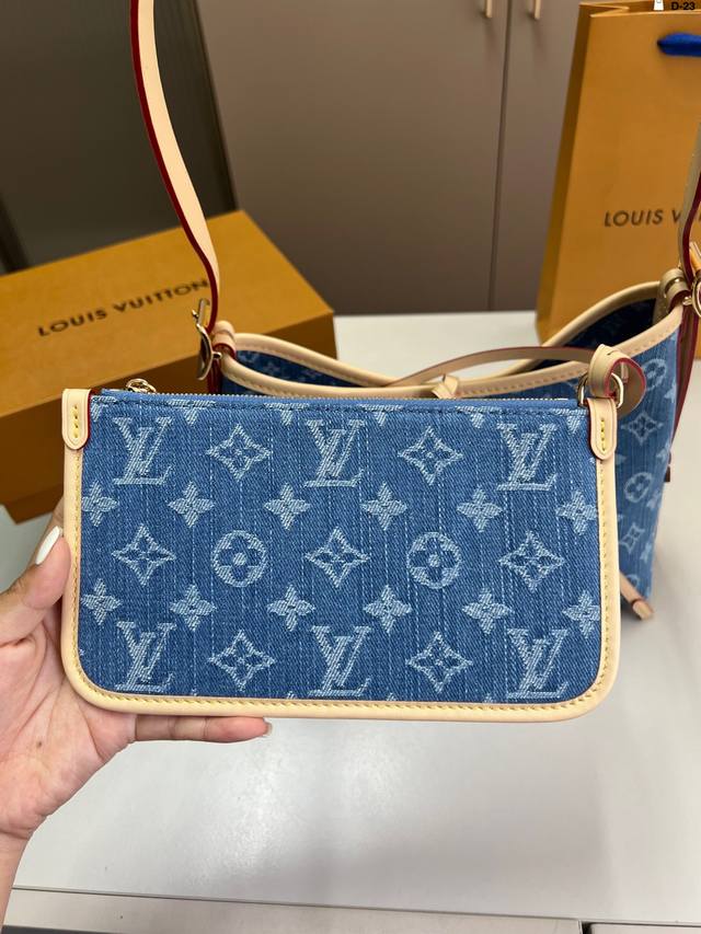 / Lv路易斯威登丹宁牛仔系列 Carryallbb购物袋 手提单肩斜挎托特包新款购物袋 D-23尺寸26×17折叠盒飞机盒