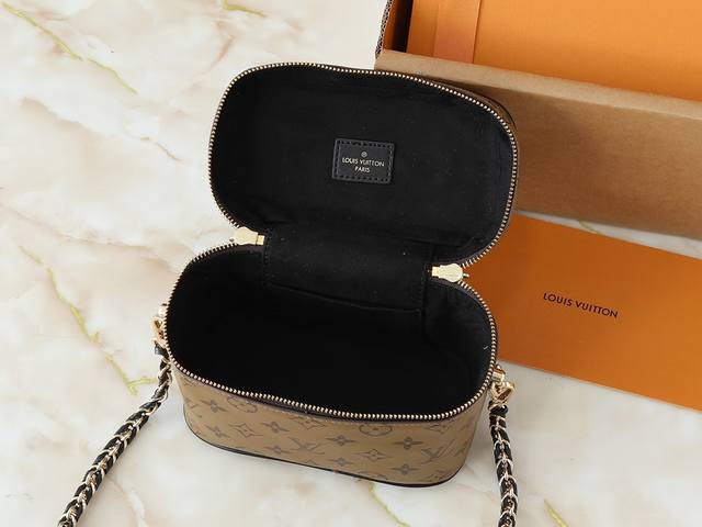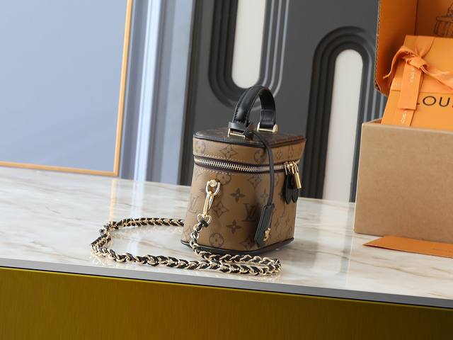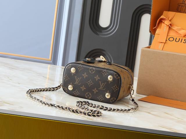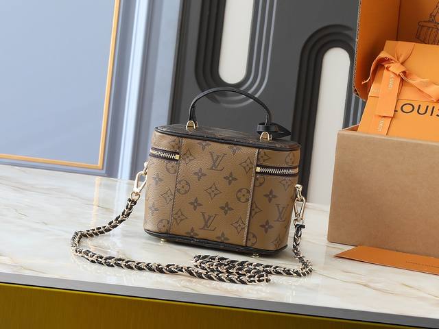 升级原版 M45165 本款Vanity 小号手袋 春夏季见证 Nicolas GhesquitèRe 为路易威登旅行传承谱写的当代乐章。本款都市手袋以 Monogram 和 Monogram Reverse 帆布重绎 Nice 化妆包,无论手提或系上皮革链条肩带实现肩背或斜挎,均可令柔软轻盈的设计随身而动。尺寸:19X13X11Cm
