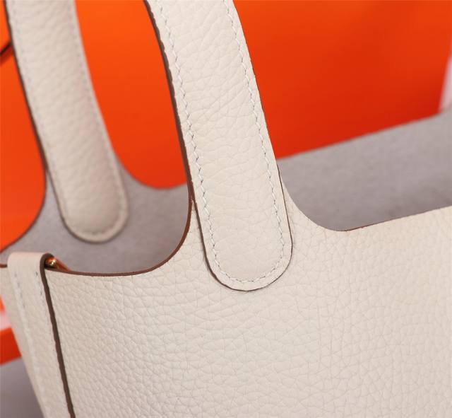 爱马仕 奶昔白 手工蜜腊线+Tc皮 18Cm 一个爱马仕中的独特存在. ▏轻便、耐磨又防水,贴近生活的设计 ▏ 自从2002年上市,这只被戏称为“菜篮子”的包包