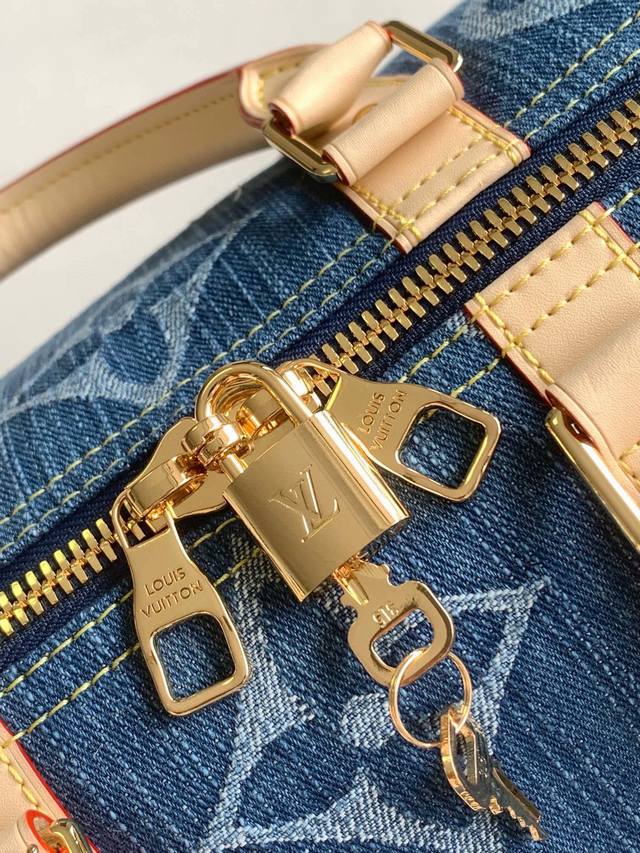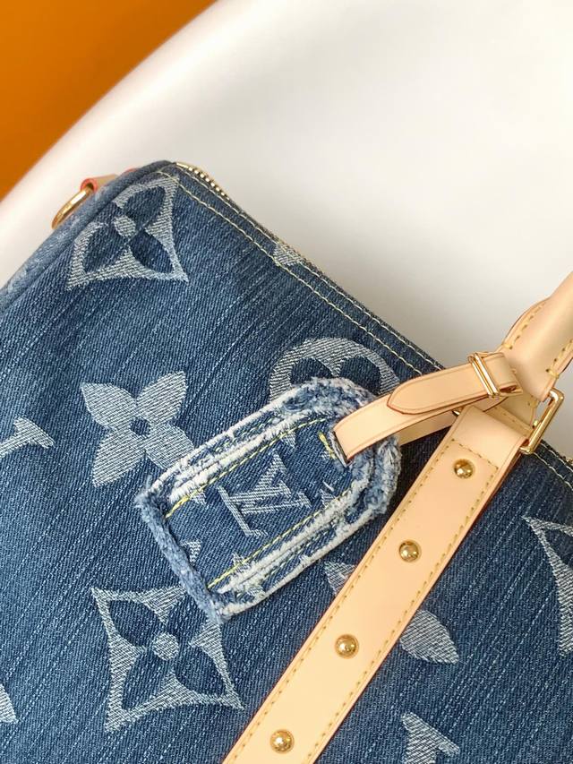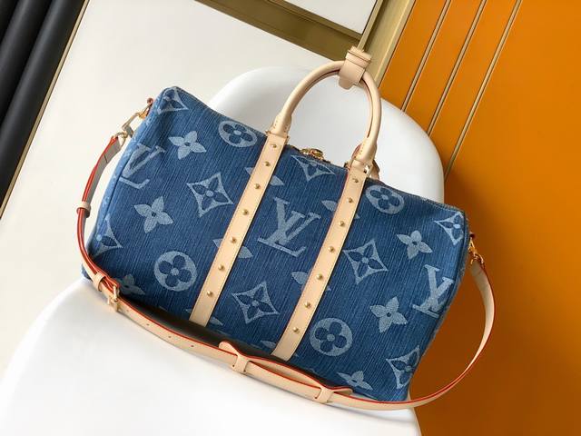 牛仔色浅的变码芯片 顶级原单 M24315 Keepall 50 旅行袋 配肩带 50Cm,丹宁系列