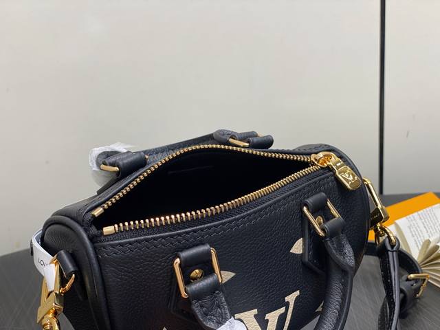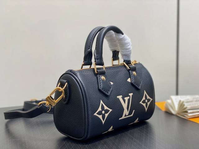 顶级原单 M82450黑色丝印 M81456全皮Speedy枕头包 本款 Nano Speedy 手袋 取材 Monogram Empreinte 压纹皮革,浓缩 Speedy 手袋的经典构型,并经过专业工艺呈现浪漫星空般的盈盈微光,宣示 Summer Stardust 系列的设计理念。可拆卸并调节的肩带实现多种背携方式。尺寸:16 X 10 X 7.5 厘米。