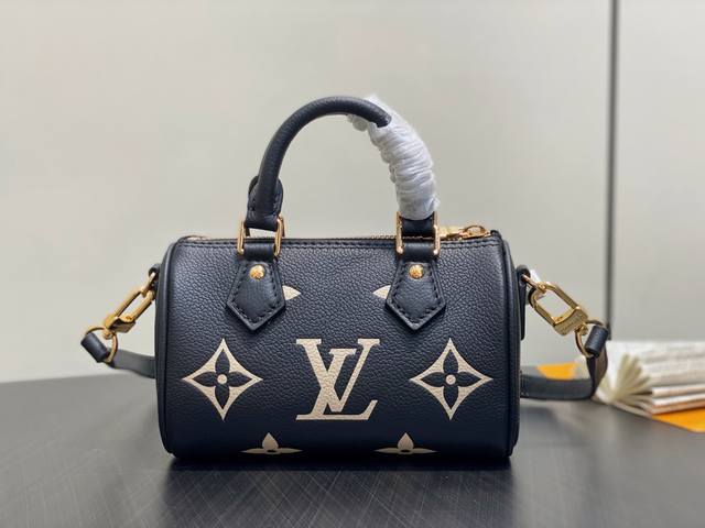 / 顶级原单 M82450黑色丝印 M81456全皮Speedy枕头包 本款 Nano Speedy 手袋 取材 Monogram Empreinte 压纹皮革,浓