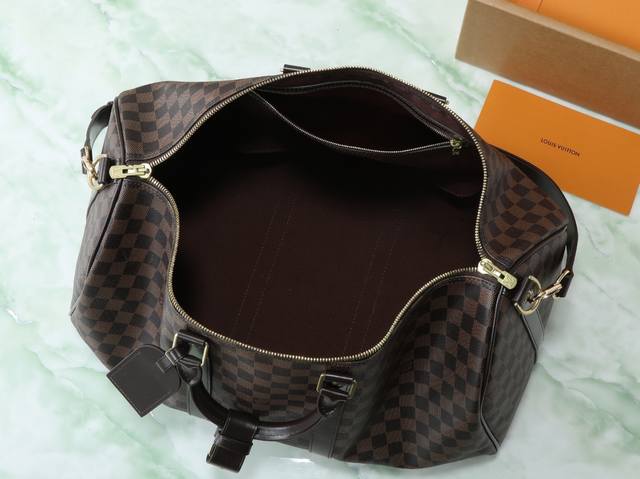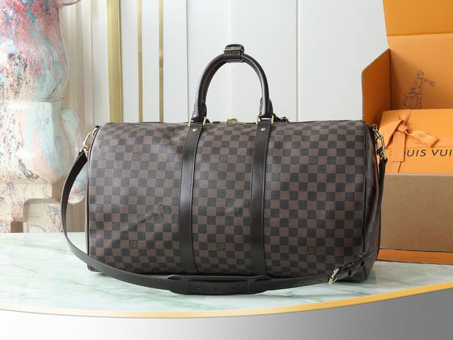 顶级原单 独家实拍 M41416啡格 Keepall 50旅行袋 配肩带 这款以Damier Graphite帆布制作的旅行包再现了的经典设计,时尚优雅,同时轻便耐用。备有可拆卸背带,可手提或肩背,十分实用。详细特征50 X 29 X 23 厘米 长度 X 高 X 宽 特殊涂层帆布天然牛皮饰边棉纺织衬里银色金属配件双拉链开合设计可脱卸皮质Id证件套挂锁随身上机行李尺寸肩带:可拆卸,可调节包带半长:36.0 厘米包带半长可调至:50.0 厘米手柄:双手柄