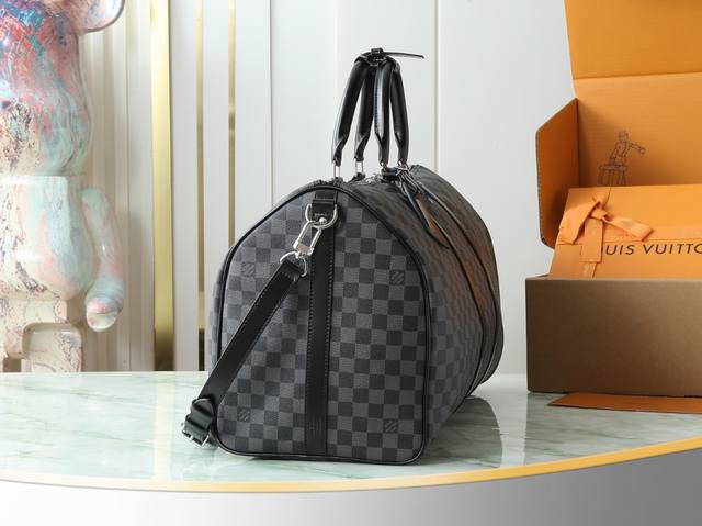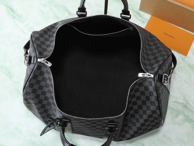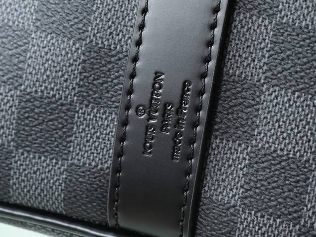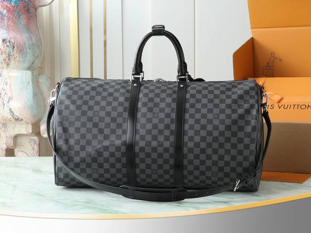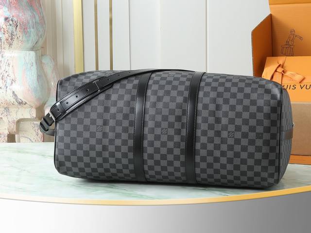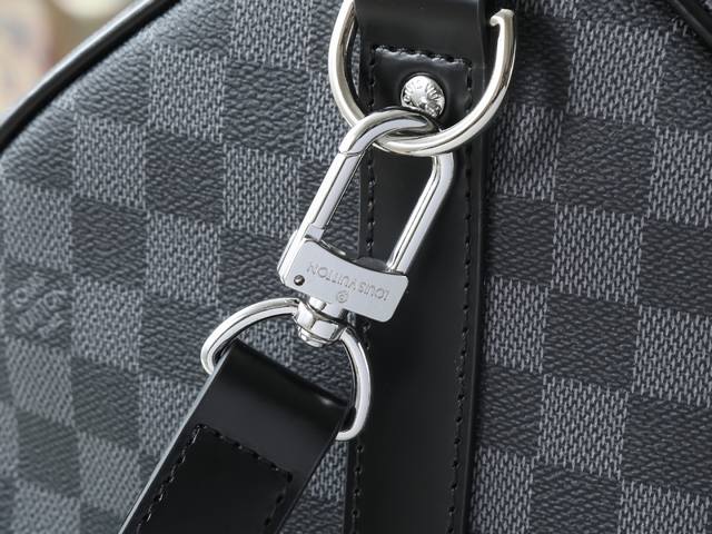 顶级原单 独家实拍 N41413黑格 Keepall 55 旅行袋 配肩带 这款以Damier Graphite帆布制作的旅行包再现了的经典设计,时尚优雅,同时轻便耐用。备有可拆卸背带,可手提或肩背,十分实用。详细特征55 X 31 X 26 厘米 长度 X 高 X 宽 特殊涂层帆布天然牛皮饰边棉纺织衬里银色金属配件双拉链开合设计可脱卸皮质Id证件套挂锁随身上机行李尺寸肩带:可拆卸,可调节包带半长:36.0 厘米包带半长可调至:50.0 厘米手柄:双手柄