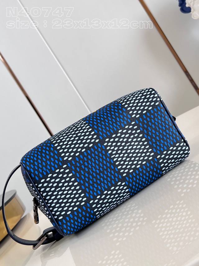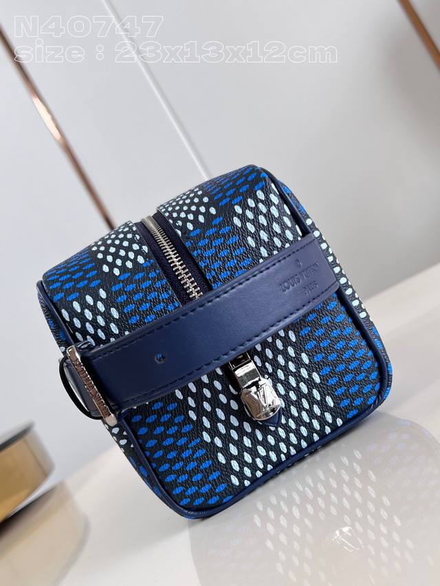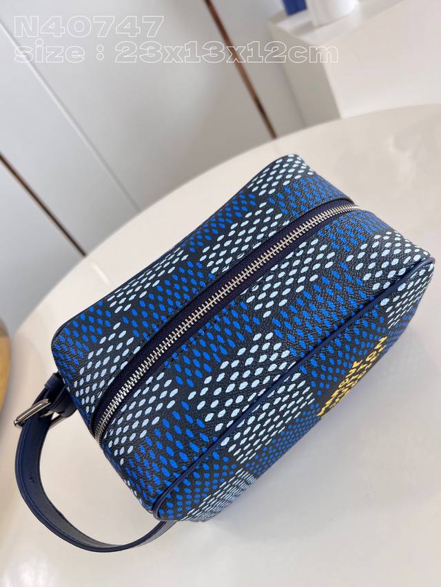顶级原单 独家实拍 N40747蓝 本款 Locker Dopp Kit 盥洗袋选用 Pharrell Williams 创作的 Damier Heritage 帆布,令标志性格纹流露复古气息。精巧设计契合都市节奏,可调节手柄和可水洗内衬再添功能元素。23 X 13 X 12厘米 长度 X 高 X 宽 C