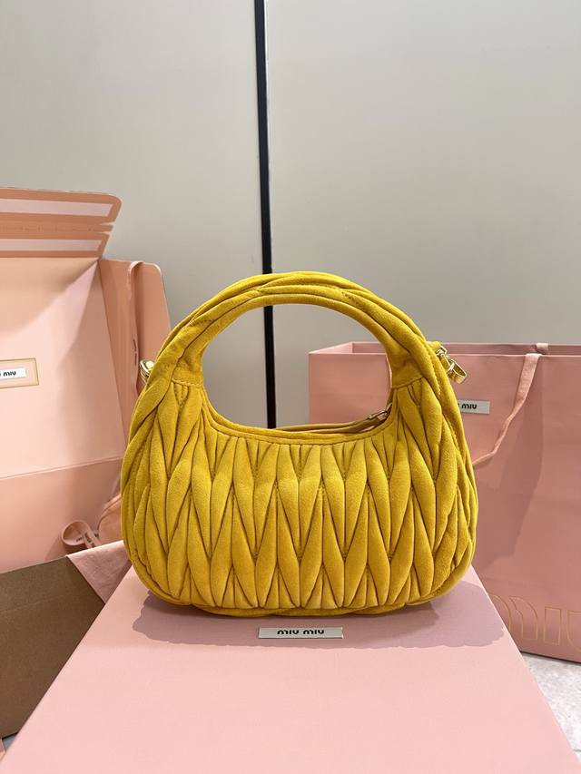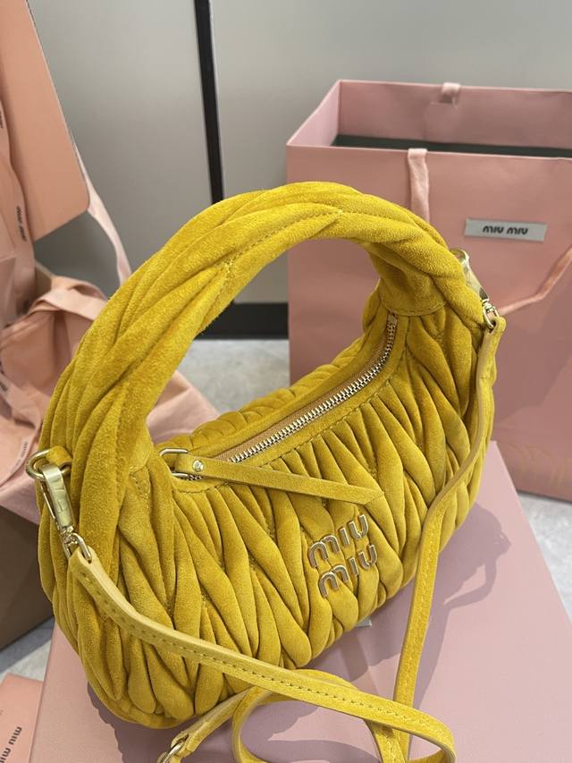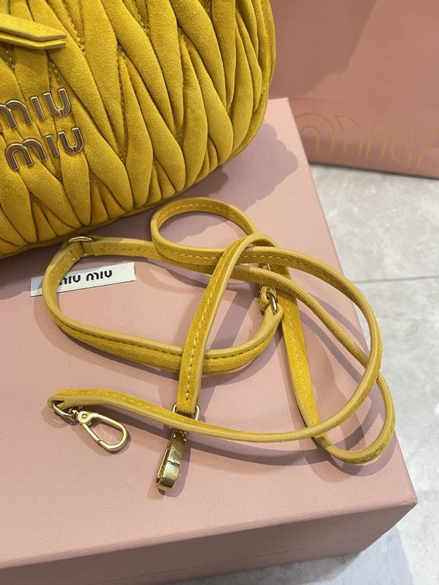 5Bc125:Miumiu新品Miuwander麂绒皮手袋,今年超火的鹿皮材质,秋冬必备单品,复古磨砂五金,利用圆孤的曲线,保留了应有的俏皮感,包型整体硬挺有型,充满个性,可甜可盐,容量可光,尺寸:23X13X7,配原版包装