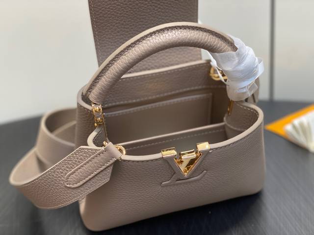 / 原单精品 M56071浅咖 全皮Cap那英款 Capucines 迷你手袋 此款 Capucines 迷你手袋由 Taurillon 皮革制成,顶部饰有 Mon